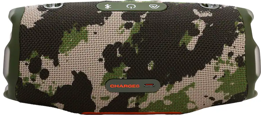 • Recycled plastic and fabric, plus FSC certified paper packaging The JBL Charge 6 incorporates post-consumer recycled plastic and fabric for the speaker grille. It's also packaged in FSC-certified paper printed with soy ink.