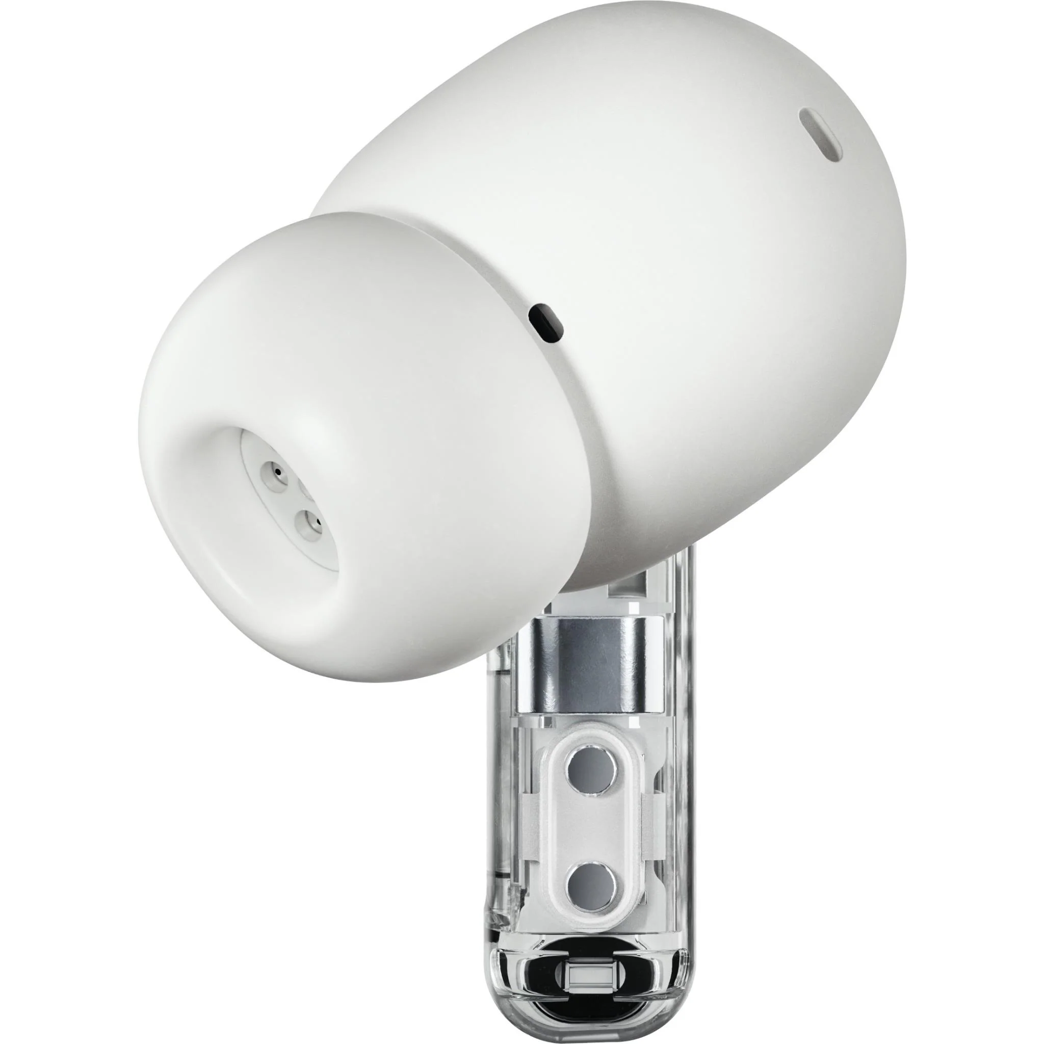 • Powerful 11 mm driver, clear, rich, punchy NOTHING has made their driver even more compact. With double the power than Ear (2), Ear (a) delivers an even deeper bass performance. The extra space gives sound waves more room to vibrate. With two new vents, airflow is improved inside the bud. For less distortion and richer overall clarity.